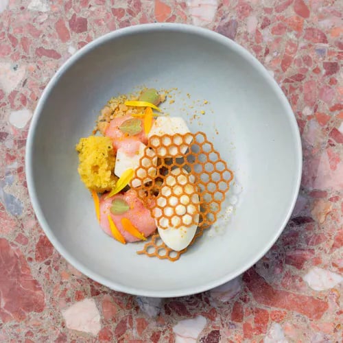 Trois étoiles Michelin couronnent la cuisine de William Bradley au Fairmont Grand Del Mar, où les inspirations mondiales épousent les produits californiens à travers des menus dégustation de cinq à dix services, renouvelés au fil des saisons. Son riz Koshihikari au sabayon fumé au bois de pommier et caviar Regiis Ova illustre cette dualité. Les grandes baies vitrées ouvrent sur le parcours de golf de Tom Fazio, tandis que la cave de Victoria O'Bryan trône au centre d'une salle dédiée à une gastronomie joueuse et maîtrisée.