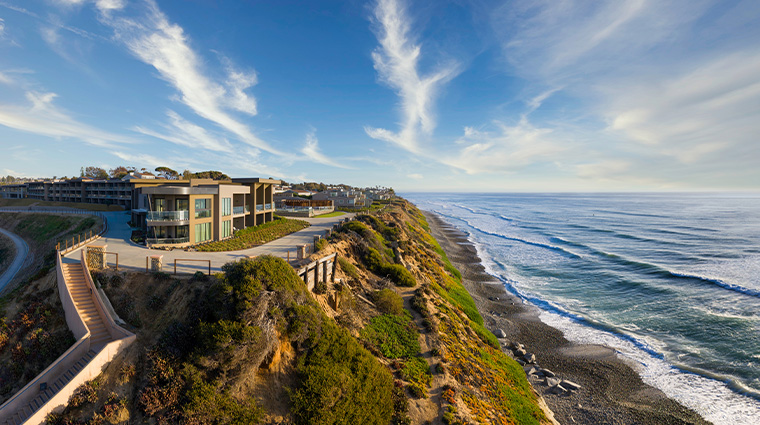 Sur les falaises entre San Diego et le comté d'Orange, ce refuge de 130 chambres décline l'esprit surf californien à travers les intérieurs en bois flotté de Mark Zeff et les photographies océaniques d'Aaron Chang. Chaque chambre donne sur un balcon face au Pacifique, à Ponto Beach ou à la lagune de Batiquitos. La cheffe Claudette Zepeda, semifinaliste du James Beard Award, dirige le restaurant VAGA, tandis que le Spa Alila puise dans la lavande de mer et le wakame ses soins signatures.