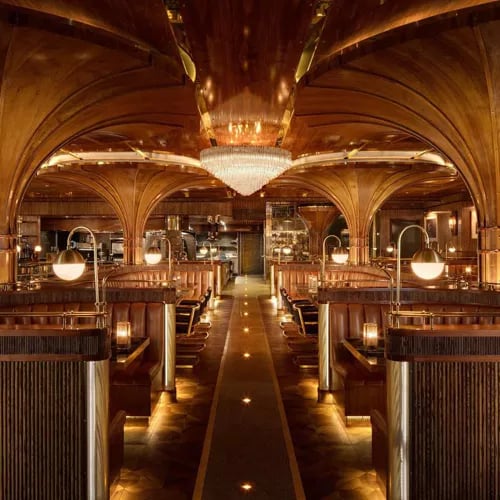 Dans ce steakhouse de Little Italy, le décor art déco côtoie les portraits noir et blanc de légendes du rap comme Eazy-E, tandis que des serveurs en smoking et Converse poussent des chariots rétro entre les tables. Une salle de découpe vitrée expose les pièces de bœuf avant cuisson. Sur le toit-terrasse, un bar en plein air domine le quartier. Le tartare, préparé devant les convives avec œuf de caille et cornichons, mérite le détour autant que les grillades.