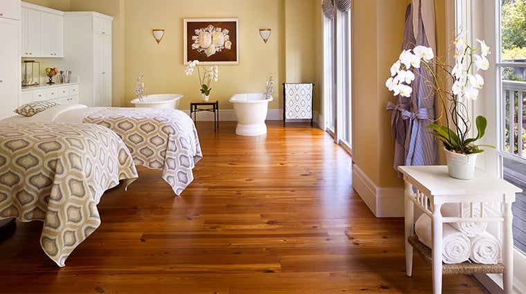 Sous les voiles de mousse espagnole, ce spa au style cottage ouvre sur les paysages verdoyants du Lowcountry à travers ses persiennes de plantation. Le massage Amazing Grace se déroule à bord d'un yacht historique de 1913 glissant sur la May River. Les couples s'isolent dans des suites privées pour le rituel Lover's Jubilee de deux heures et demie, avant de savourer cookies aux pépites de chocolat et eau citronnée au salon de relaxation.