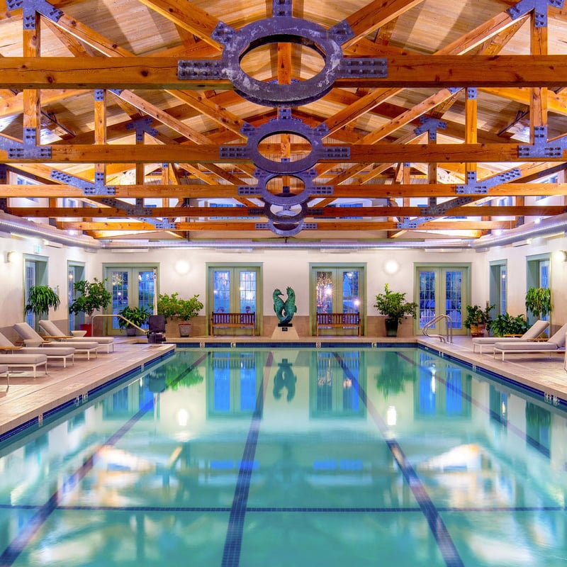 Érigé en pierre des carrières locales et en bois des forêts avoisinantes, ce complexe de 312 chambres offre un accès skis aux pieds à l'une des stations les plus réputées de la côte Est. D'imposantes cheminées en pierre ponctuent les espaces communs, tandis que les hébergements varient des suites du bâtiment principal aux chalets indépendants. Spa, golf et pêche à la mouche prolongent l'expérience au-delà de la saison hivernale.