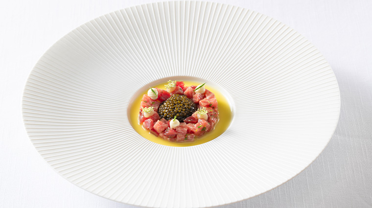 Trois cuisines distinctes—tempura, teppanyaki, sushi—partagent une étoile Michelin au Wynn Palace, chacune dirigée par des maîtres japonais travaillant des produits acheminés quotidiennement de l'archipel. Un cerisier doré sculpté, illuminé par LED au fil des saisons, domine la salle principale. Le filet de wagyu de Kagoshima, saisi au teppan et accompagné de wasabi et sauce à l'oignon, révèle la précision du chef; une collection de sakés exclusifs, commentée par le sommelier maison, prolonge le kaiseki.
