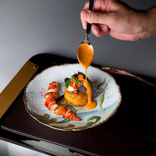 Le chef Tam Kwok-Fung, maître vénéré ayant cuisiné pour des têtes couronnées et chefs d'État, compose une carte doublement étoilée renouvelée toutes les deux semaines selon les vingt-quatre termes solaires du calendrier lunaire chinois. Sous un lustre aux sept cents papillons de verre de Murano, le ge zha d'automne révèle une crème d'œuf croustillante au crabe velu. Près de cinquante thés rares, dont un Liubao de 1980, accompagnent les dégustations.