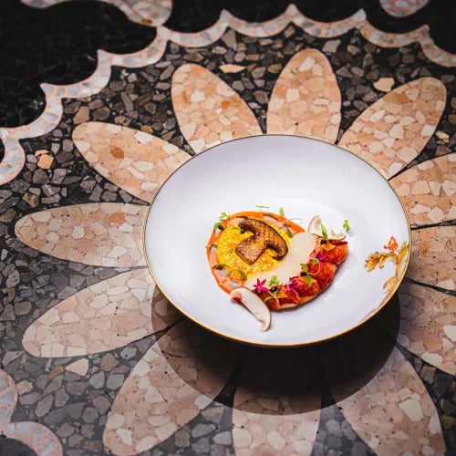 L'institution familiale de la côte amalfitaine déploie son répertoire napolitain sous les ors du Palazzo Versace à Cotai. Tomates San Marzano, olives Nocellara et citrons de Namonte voyagent depuis la ferme biologique des Iaccarino pour sublimer tagliolini au parmesan et truffe blanche. Le menu dégustation en six services célèbre le précieux champignon, du risotto au soufflé noisette, tandis que la cave aligne plus de 450 000 bouteilles.