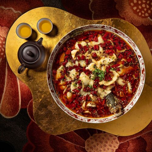 Sous les ors et les rouges d'un décor fastueux, Feng Wei Ju déploie une cuisine sichuanaise et hunanaise couronnée de deux étoiles Michelin. Le spectacle des nouilles étirées à la main précède des assiettes généreuses : filets de poisson mandarin nappés d'huile pimentée, poulet sauté aux cacahuètes et piments, tête de carpe vapeur relevée de piment pour les amateurs de saveurs franches.