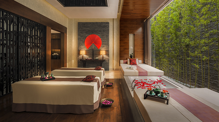 Sur deux niveaux et près de 560 mètres carrés dans la tour Altira Macau, cet espace baigné d'effluves de citron vert, gardénia et bergamote offre depuis chaque fenêtre un panorama sur la mer de Chine méridionale. Bassins de vitalité, fontaines de glace et douches Vichy composent le parcours hydrothérapique. Le massage Intuitive s'adapte entièrement à chaque visiteur, prolongé par thé et collations dans des cabines privées sans limite de temps.