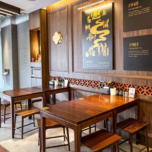 Au bout d'une ruelle discrète de Licheng, une cour ombragée par un grand arbre signale cette table Bib Gourmand dédiée à la cuisine du Fujian. Mobilier ancien, atmosphère d'un autre temps : la soupe de nouilles au taro de Yongchun déploie sa texture crémeuse dans un bouillon parfumé, tandis que le foie de porc sauté offre un contraste saisissant entre tendreté et croustillant. Les beaux jours appellent une place en terrasse.