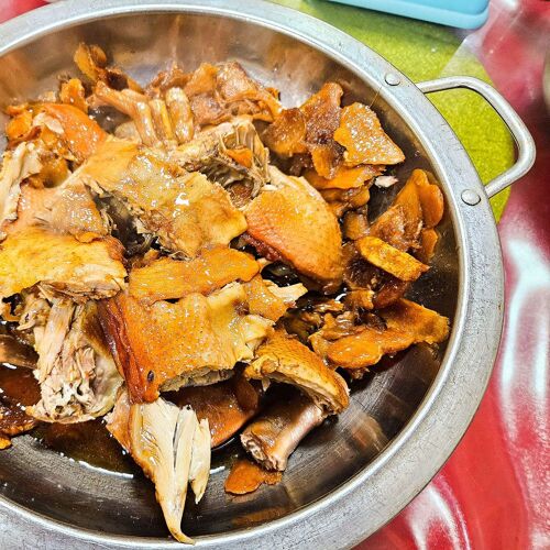 Transmise sur trois générations, cette adresse Bib Gourmand perpétue l'art de la cuisine familiale du Minnan avec une authenticité rare à Quanzhou. Le canard braisé au vin de riz, gingembre et sel—chair fondante se détachant de l'os—côtoie des classiques régionaux : poisson marin laqué au soja et ciboule, couteaux de mer au sel poivré. Une table sur deux étages où les saveurs du Fujian retrouvent leur âme d'antan.