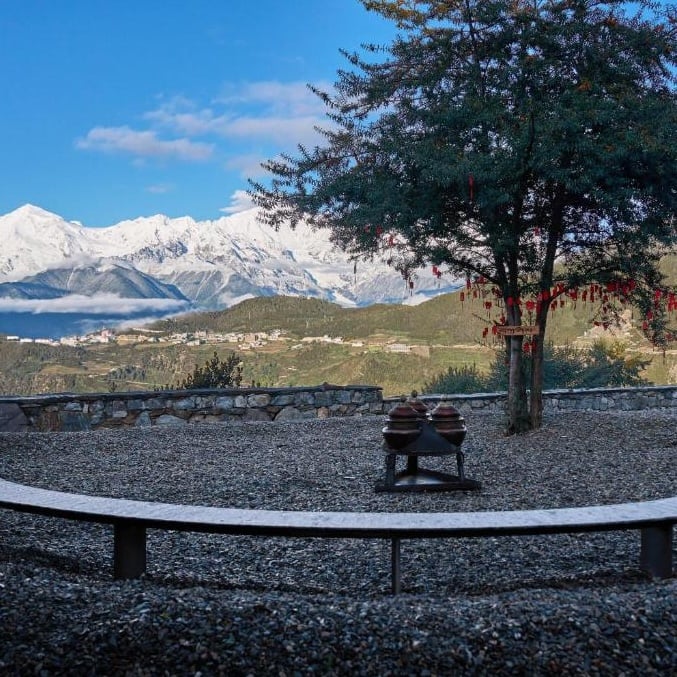 À 3 350 mètres d'altitude dans les montagnes du Yunnan, cette ancienne demeure tibétaine reconvertie en hôtel de 19 chambres cultive l'esthétique japonaise du wabi-sabi. Les surfaces brutes et les imperfections assumées confèrent aux espaces une élégance dépouillée, presque monastique. Bibliothèque, salon et jardin ponctuent le séjour de moments contemplatifs — une adresse exigeante d'accès, pensée pour les voyageurs en quête d'authenticité et de haute altitude.