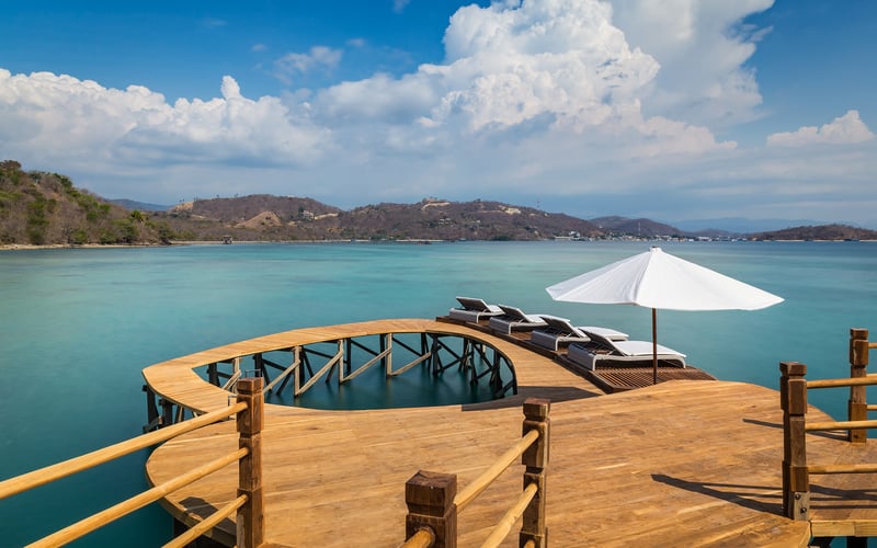 Plus à l'est, l'île de Moyo à Sumbawa fonctionne comme réserve naturelle protégée, tandis que l'archipel de Komodo chevauche la frontière biogéographique entre faunes asiatique et australienne. Flores reste moins développée pour le tourisme, bien que Labuan Bajo soit devenue le port d'embarquement pour les expéditions vers Komodo. L'hébergement dans cette région tend vers des établissements autonomes — des propriétés qui fonctionnent comme destinations à part entière, compte tenu des distances et des infrastructures limitées.