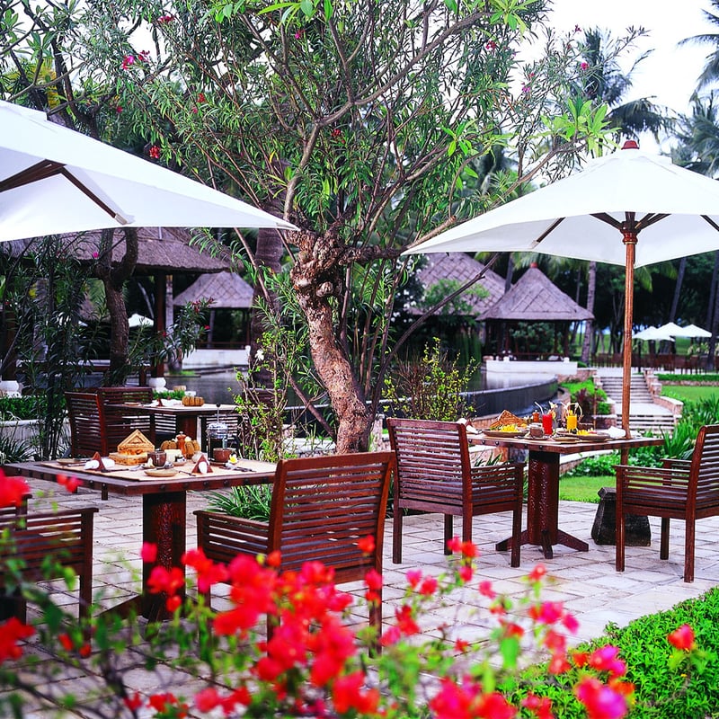 Sur la côte nord de Lombok, ce domaine privé de 24 acres déploie 550 mètres de plage dorée face aux îles Gili. Les cinquante villas aux toits de chaume abritent mobilier en teck et baignoires de jardin, les catégories supérieures disposant de piscines privées. Le spa Banyan Tree propose des soins javanais traditionnels dans des pavillons en plein air, tandis que les bassins miroirs et les palmeraies composent un décor d'une intimité absolue pour les couples en quête d'évasion romantique.