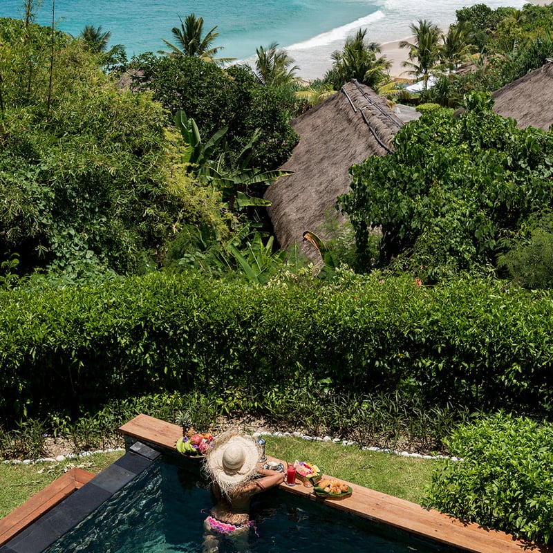 Sur la plage de sable blanc de Karoso, côte ouest encore préservée de Sumba, une architecture moderniste dialogue avec l'artisanat local dans ce refuge pensé pour les esthètes. Les villas s'accompagnent de piscines privées, tandis que Julang accueille en résidence des chefs français pour des dîners intimistes. La ferme du domaine approvisionne les cuisines, ancrant cette adresse cosmopolite dans le terroir indonésien.