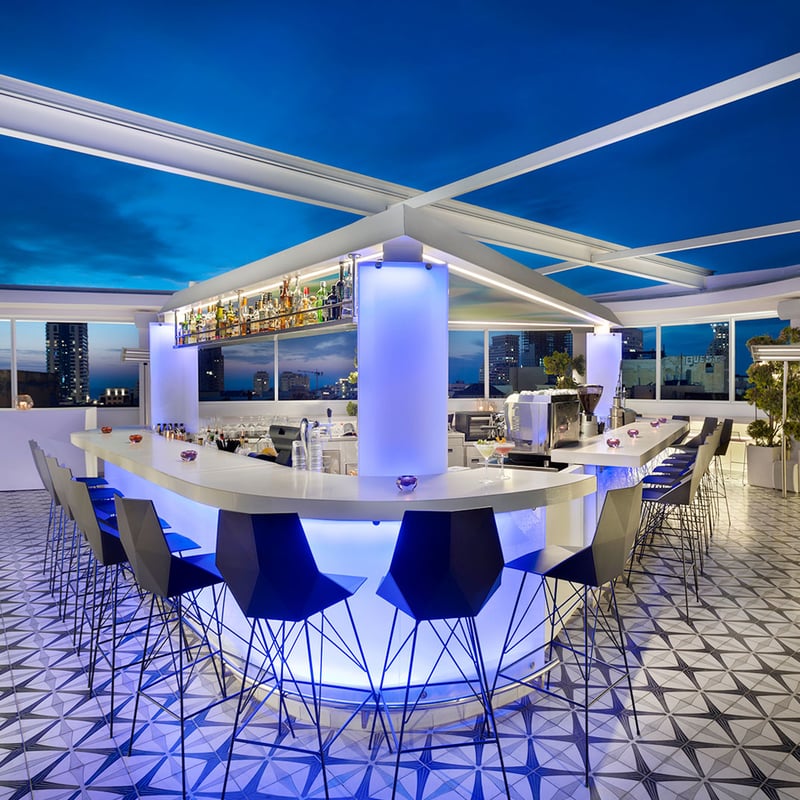 Plus ancien hôtel en activité de Tel Aviv, cet édifice de 1925 signé Yehuda Magidovitch arbore une façade rose poudré et un dôme devenu emblématique. Ses vingt chambres aux parquets cirés mêlent antiquités, art contemporain et classiques modernistes dans des volumes généreux. Sous le dôme historique, un spa avec jacuzzi ; sur le toit, une terrasse offrant couchers de soleil et vin en libre-service. Un chat résident veille sur les lieux.