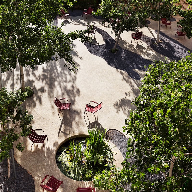 L'édifice Bauhaus des années trente signé Schlomo Liasowski s'anime sous la griffe de Karim Rashid, dont les courbes généreuses et les couleurs vives dialoguent avec la rigueur géométrique d'origine. Le bar-restaurant en toiture surplombe la Ville Blanche depuis sa piscine, tandis qu'un café-jardin ancre l'hôtel dans le quartier. Quarante chambres épurées, sauna, jacuzzi et accueil des animaux séduisent les esthètes en quête d'énergie créative.