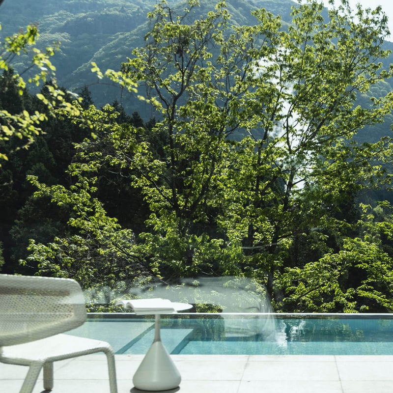 Au pied du mont Yufu, ce retreat botanique conjugue architecture contemporaine audacieuse—baies vitrées monumentales, terrasses ouvertes—et sensibilité japonaise profonde. Chaque chambre et villa dispose d'un onsen privé contemplant la vallée, tandis que saunas perchés et bain thermal aux infusions végétales prolongent l'expérience bien-être. Au restaurant Jimgu, le chef Tashi Gyamtso, formé à Blue Hill at Stone Barns, signe une cuisine végétale en prise directe avec le terroir.