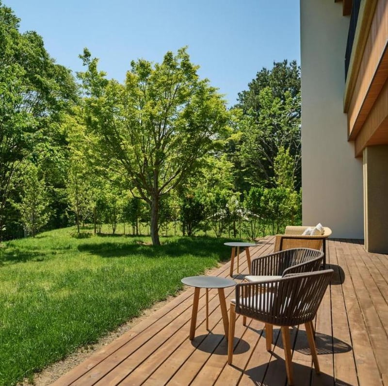 Au pied du volcan Asama, cet établissement de 155 chambres conjugue une esthétique japonaise raffinée et le confort d'un boutique-hôtel international. Certaines chambres disposent de jardins privatifs ou offrent des vues forestières depuis leur baignoire. Le spa HARNN, d'inspiration thaïlandaise, propose un sauna, tandis que le restaurant Kagaribi décline une cuisine aux accents italiens tout au long de la journée.