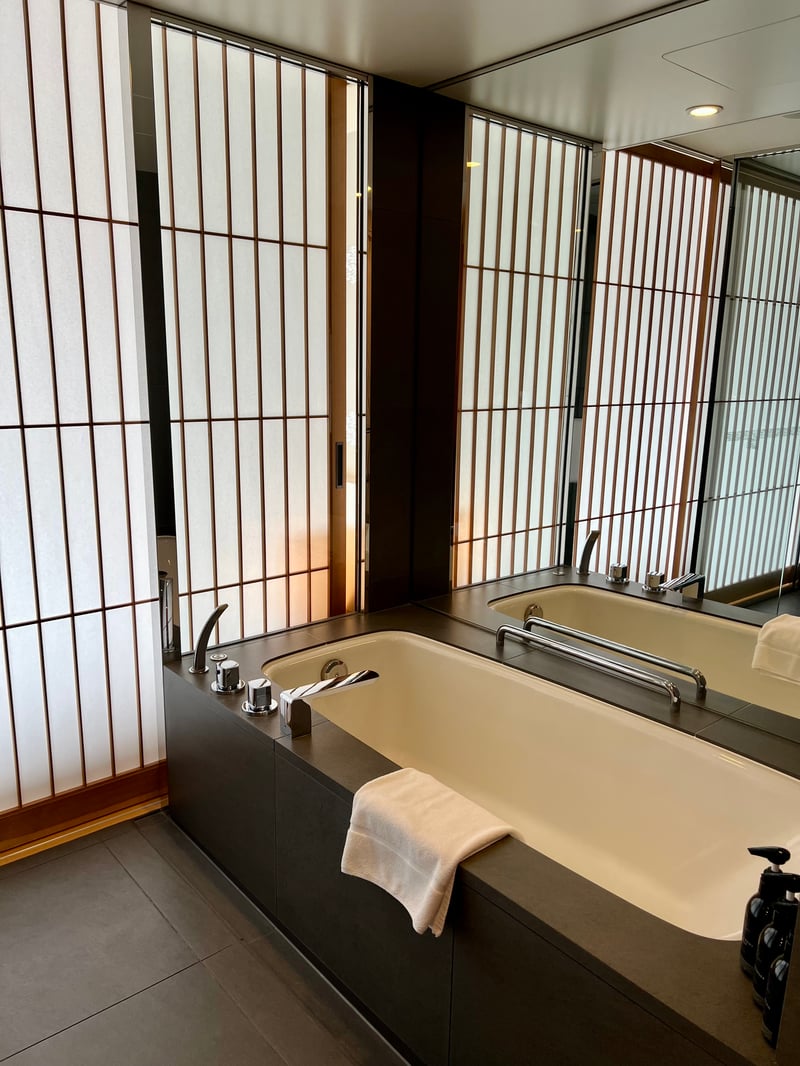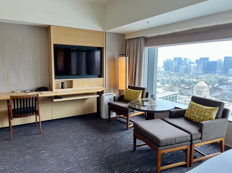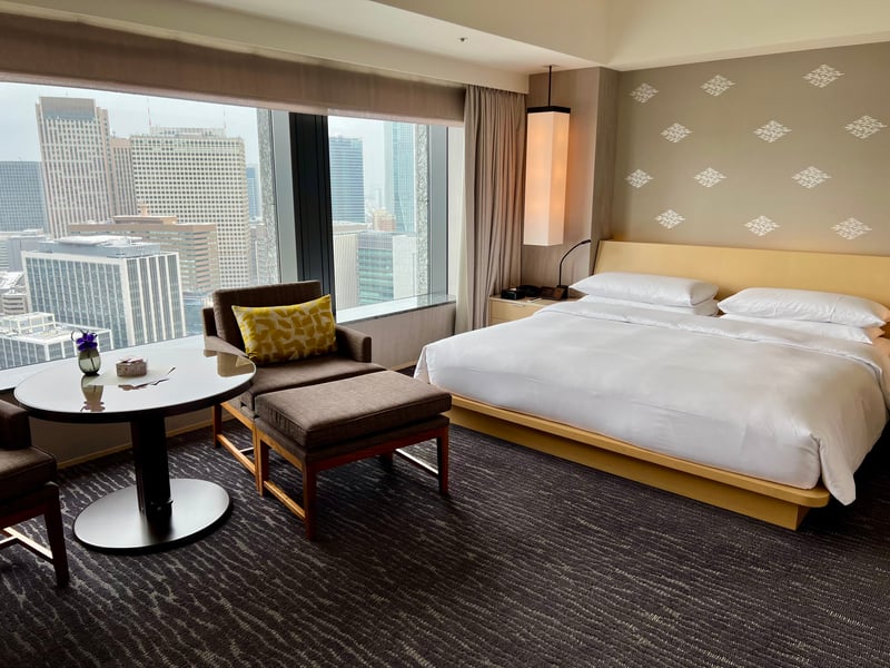 Les chambres de l'hôtel offrent une expérience de confort et de sophistication inégalée. Les salles de bains, véritable atout de l'établissement, sont équipées de grandes baignoires et de douches à effet pluie, offrant un espace de détente privilégié après une journée à explorer la ville. Les chambres des étages Club, situées aux trois derniers niveaux de l'hôtel, bénéficient d'un accès exclusif à « The Capitol Lounge SaRyoh », où un service personnalisé est offert pour s'assurer que chaque séjour soit inoubliable. Nous avons eu le plaisir de séjourner dans une Club Deluxe King de 45 m², un espace luxueux qui, grâce à ses cloisons en papier shoji, offre des vues majestueuses et promet une expérience de sommeil réparatrice.