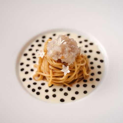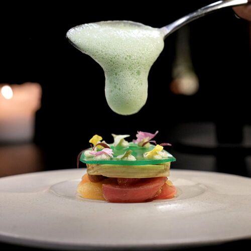 Derrière les tôles ondulées d'un ancien dépôt de bus reconverti en espace artistique se déploie une salle au minimalisme soigné, écrin d'une table étoilée. La carte, renouvelée chaque mois, décline une cuisine européenne raffinée aux inflexions malaisiennes. Le pain au levain maison, servi avec un beurre à la tomate, annonce d'emblée la créativité méticuleuse qui traverse chaque assiette jusqu'au trou normand.