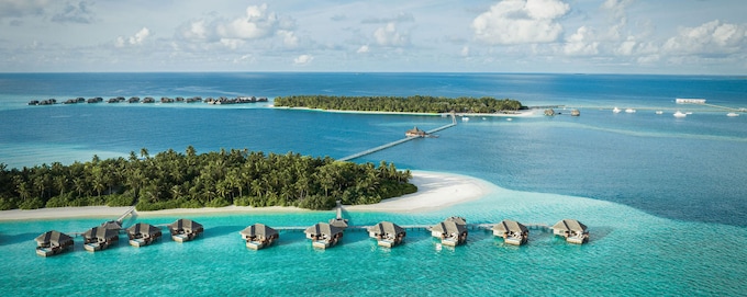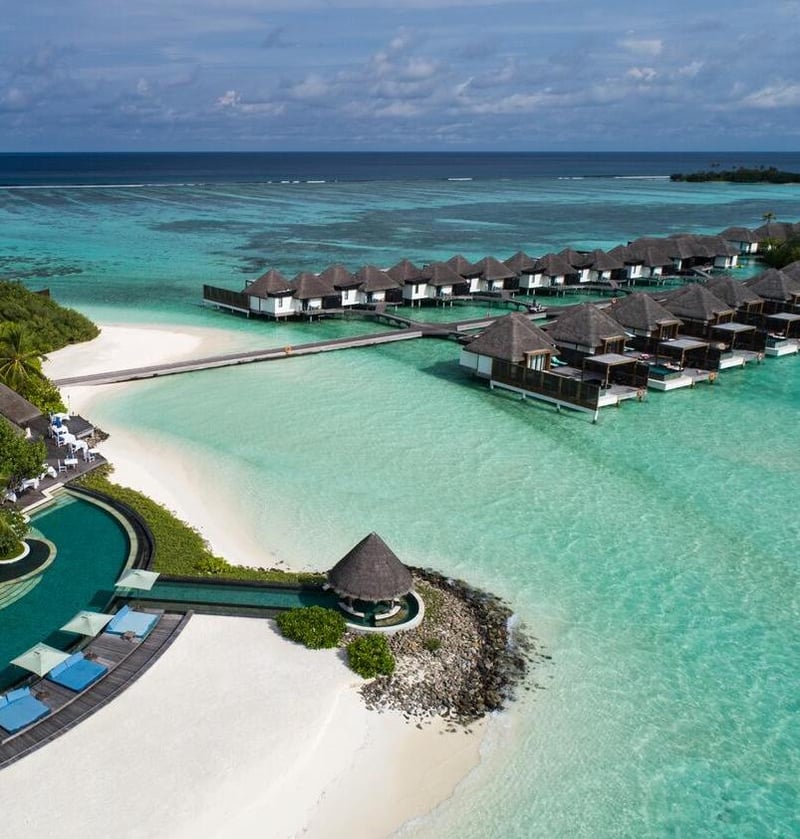 Sur un îlot en forme de haricot dans l'atoll d'Ari Nord, les quatre-vingt-six villas au toit de chaume de Constance Halaveli conjuguent raffinement pieds nus et plongées d'exception parmi épaves et requins-baleines. Les Water Villas flottent au-dessus du lagon turquoise, chacune dotée d'une piscine privée et d'un accès direct à l'eau. Le spa sur pilotis propose des rituels aux plantes Sisley Paris, tandis que le club enfants Coconut Tribe, ouvert jusqu'à 21 heures, libère les parents pour des dîners en tête-à-tête.
