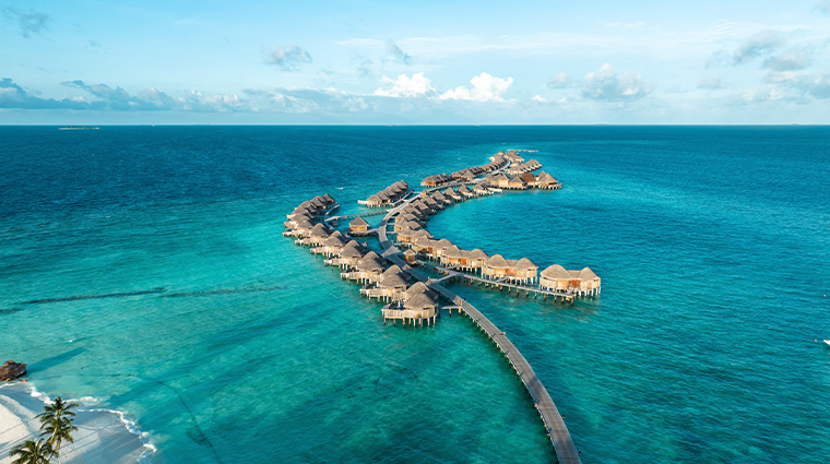 Sur un îlot circulaire de l'atoll de Malé Nord, quarante-huit villas au toit de chaume disposent chacune d'une piscine privée et d'un jacuzzi. Des biologistes marins permanents dirigent un laboratoire pionnier dédié à la réhabilitation des tortues et à la replantation corallienne. Le restaurant sur pilotis Madi Hiyaa offre une table raffinée, tandis que le spa d'inspiration thaïlandaise propose des soins en plein air. Une adresse intimiste pour couples en quête d'isolement responsable.