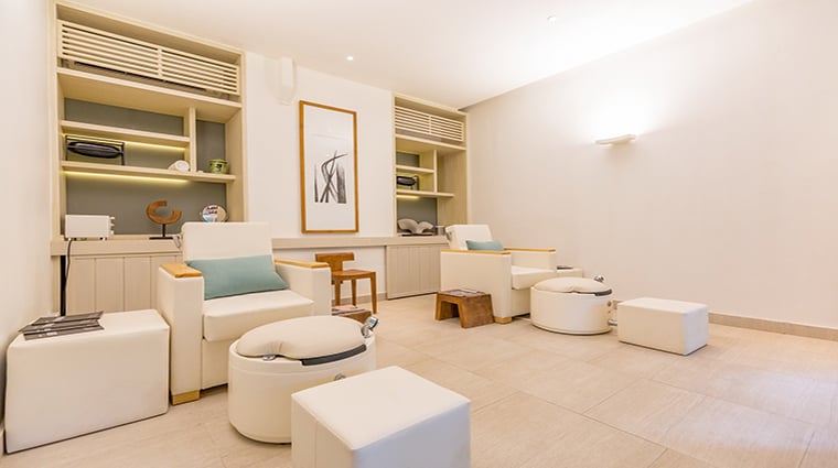 L'aromathérapeute Shirley Page a élaboré les huiles essentielles infusant ce sanctuaire bordé d'un lagon turquoise, où quinze villas de soins—onze dans les jardins tropicaux, quatre sur pilotis—accueillent des massages signature mêlant points de pression et drainage profond. Une maison de thé chinoise traditionnelle prolonge l'espace détente, tandis que le pavillon zen propose yoga et méditation. La construction privilégie matériaux locaux et démarche écoresponsable.