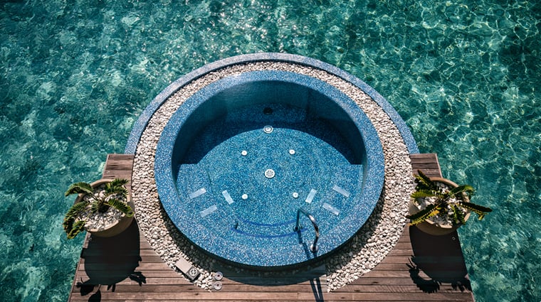 Telle une langouste posée sur les eaux translucides du Dhaalu Atoll, cette architecture flottante dévoile la vie marine à travers les parois vitrées de ses six pavillons de soins. Chaque suite privative dispose d'une terrasse avec baignoire profonde face à l'horizon, tandis que la Blue Hole Pool, parmi les plus vastes bassins d'hydrothérapie des Maldives, s'illumine à la tombée du jour. Soins ayurvédiques et protocoles Biologique Recherche parachèvent l'expérience.