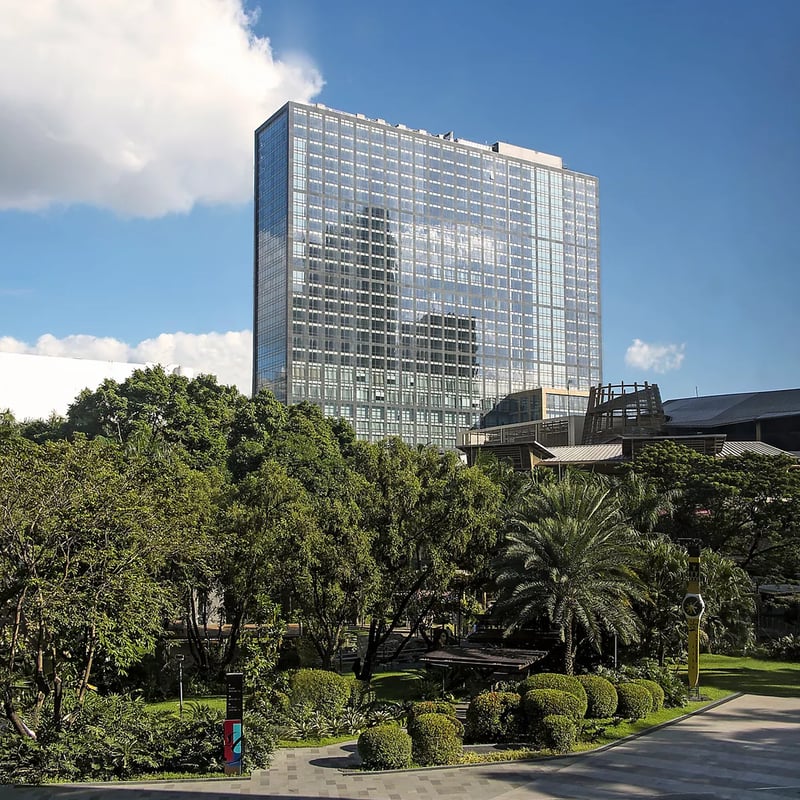 Ses deux tours dominent l'intersection la plus animée de Makati, révélant un lobby aux plafonds vertigineux où trône une sculpture solaire iconique. Les chambres d'inspiration art déco offrent un confort contemporain avec vues panoramiques sur la ville. Les restaurants Spices et Old Manila attirent les gastronomes, tandis qu'une piscine bordée de jardins tropicaux et un spa aux boiseries de bambou séduisent voyageurs d'affaires et familles.