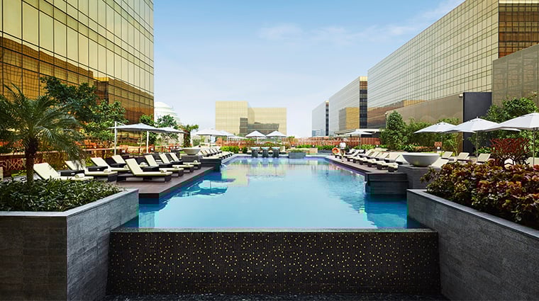 L'architecte Michael Fiebrich a signé des intérieurs rehaussés d'or pour cet établissement de 254 chambres au sein du complexe City of Dreams. Deux tours abritent des suites somptueuses aux papiers peints sur mesure, tandis que le Nüwa Spa propose piscine extérieure libre, jacuzzi et soins complets. Les familles apprécient DreamPlay, premier espace interactif DreamWorks au monde ; couples et amateurs de jeux trouvent leur compte au casino voisin et ses 380 tables.