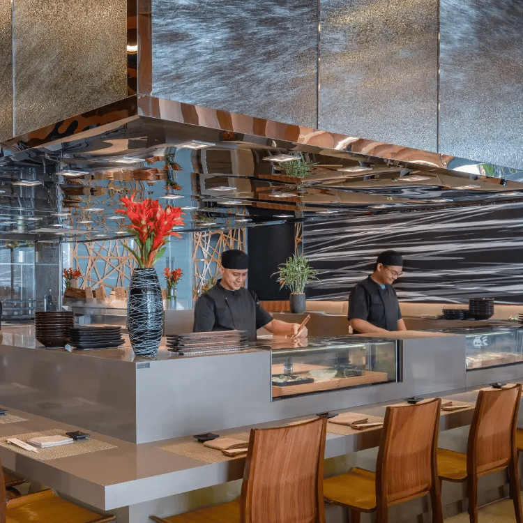 La cuisine étoilée du chef Isip à Makati déploie une technique française teintée d'influences latino-américaines et sud-est asiatiques, sublimant les produits philippins en assiettes raffinées et expressives. Le feu de bois rythme le service dans un décor de lampes en paille et de coquillages. La terrasse ventilée accueille les menus dégustation, tandis que le comptoir offre un spectacle culinaire en prise directe.