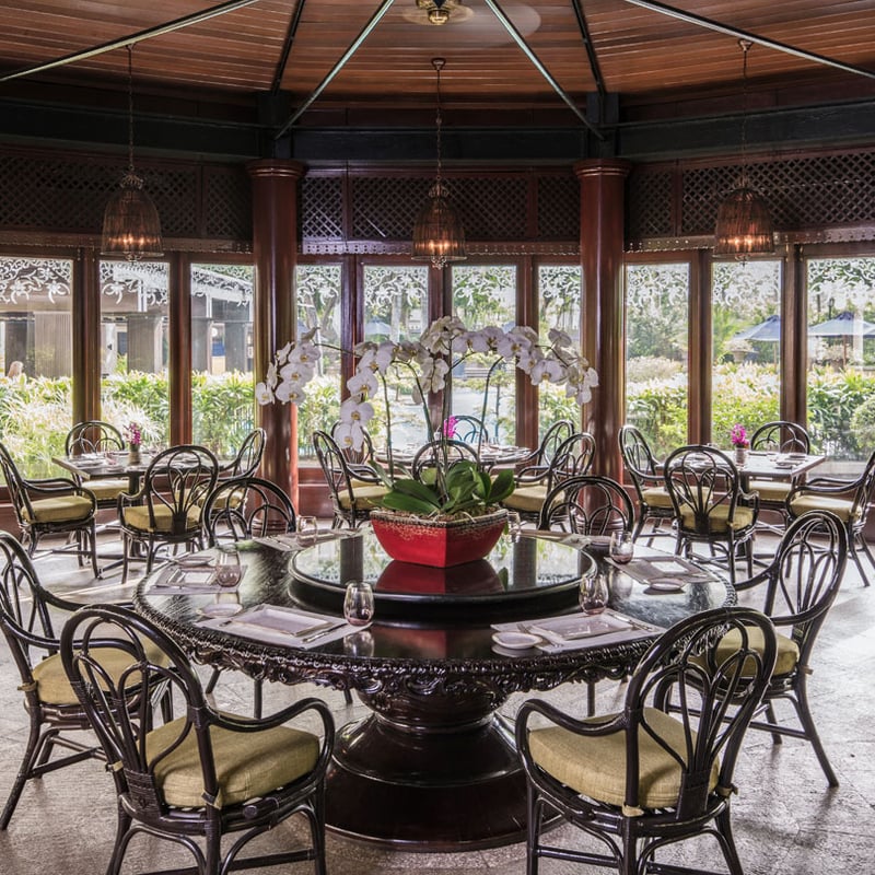 Dans les hauteurs de Tagaytay, une demeure coloniale espagnole restaurée abrite Antonio's, table raffinée où la cuisine occidentale puise dans les répertoires français et italien. Beef Wellington, côte de bœuf Angus maturée et capellini au crabe composent une carte maîtrisée, tandis que la crêpe Suzette s'offre en spectacle. La terrasse verdoyante prolonge l'expérience au milieu d'un domaine planté de jardins luxuriants.