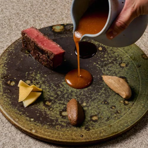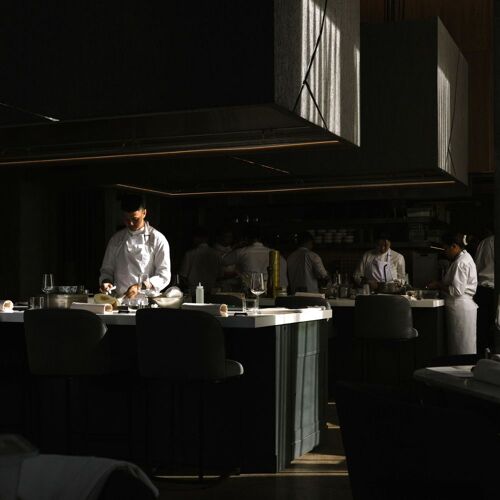 Celera — appétit, en malais — déploie sa cuisine asiatique contemporaine dans un écrin noir aux lignes épurées, baigné d'une lumière tamisée. Deux chefs-propriétaires y composent une partition étoilée Michelin, puisant dans les répertoires japonais, chinois et singapourien. Dashi, fermentation et fumée légère tissent des saveurs umami d'une rare profondeur, servies avec une hospitalité chaleureuse qui prolonge le plaisir de chaque assiette.