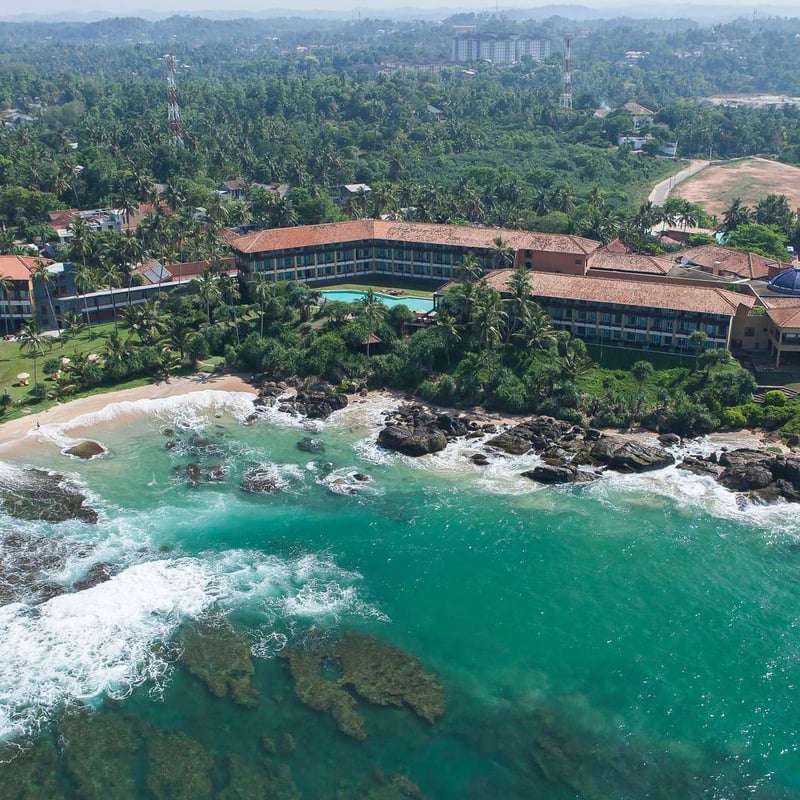 Derrière ses murailles ambrées inspirées des fortifications coloniales, ce complexe de 53 chambres déploie un style rétro-moderniste raffiné sur la plage de Koggala. Les suites disposent de piscines privatives et d'un service de majordome, tandis que le spa ayurvédique propose hydrothérapies et pavillon de yoga. Quatre restaurants servent cuisine cinghalaise épicée, fruits de mer et pizzas au feu de bois. La piscine à débordement avec pataugeoire séduit les familles.
