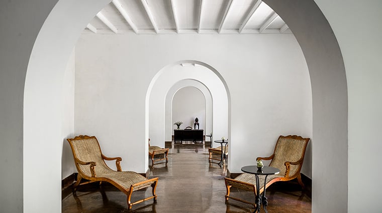 Installé dans un édifice colonial néerlandais de 1684 surnommé The Baths, ce sanctuaire aux plafonds vertigineux et aux arcades théâtrales abrite cinq salles de soins ouvrant sur des jardins bicentenaires. Un médecin ayurvédique personnalise chaque protocole—massages, onctions, gommages—tandis que deux suites d'hydrothérapie proposent bassins chauds et froids, hammams et saunas. Le yoga à l'aube sur les remparts parachève cette parenthèse régénératrice.