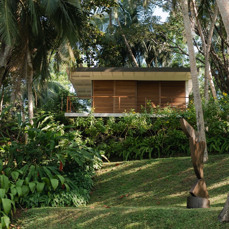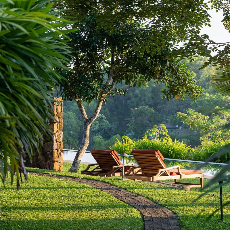 Sur les rives du lac Koggala, à l'orée d'une réserve ornithologique, la Kurulu House de l'architecte Channa Daswatte impose son modernisme tropical comme point d'ancrage de cet éco-resort confidentiel. Quatorze hébergements seulement, dont des cabanes perchées dans la canopée, s'éparpillent dans la forêt dense. Le restaurant The Kitchen décline une cuisine inspirée des pêches locales face au lac, tandis qu'un pavillon de yoga surélevé parmi les frangipaniers prolonge l'expérience contemplative.