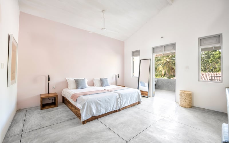 Sur la plage de Kabalana, cette structure contemporaine aux façades vitrées sur deux niveaux capture l'immensité de l'océan Indien à travers ses baies panoramiques. Les neuf chambres déclinent une esthétique mid-century moderne—béton ciré, mobilier sur mesure, balcons privatifs—tandis qu'une piscine aménagée dans un conteneur maritime recyclé apporte une touche industrielle inattendue. Les amateurs de design et de surf y trouvent un refuge réservé aux adultes, ponctué d'une cuisine sri-lankaise de la ferme à l'assiette.