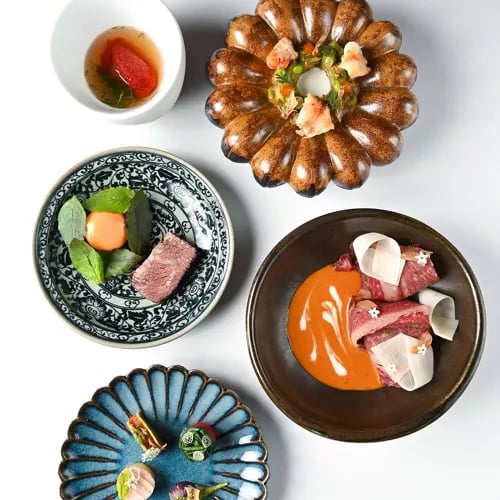 Au 65e étage du Tower Club at Lebua, un chef japonais réinterprète la gastronomie française à travers son double héritage, appliquant les techniques classiques des deux traditions à des produits saisonniers d'exception. Le menu en sept services, doublement étoilé par Michelin, évolue au fil des saisons, chaque assiette révélant précision technique et audace créative. Si la vue panoramique sur Bangkok impressionne, c'est l'équilibre entre maîtrise et inventivité qui capte véritablement l'attention.