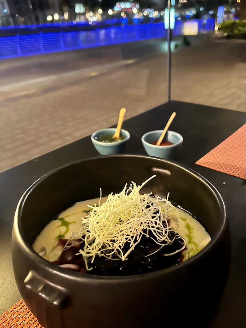Situé au sein de l'Hôtel Grosvenor House, un des joyaux de l'hospitalité 5 étoiles de Dubaï, ce cadre enchanteur et serein offre une vue sur la marina animée et sur le ballet incessant des bateaux. Dès notre arrivée, nous avons été accueillis par d'imposants taureaux d'acier qui montent la garde à l'entrée, évoquant avec force la vigueur de l'Amérique latine.