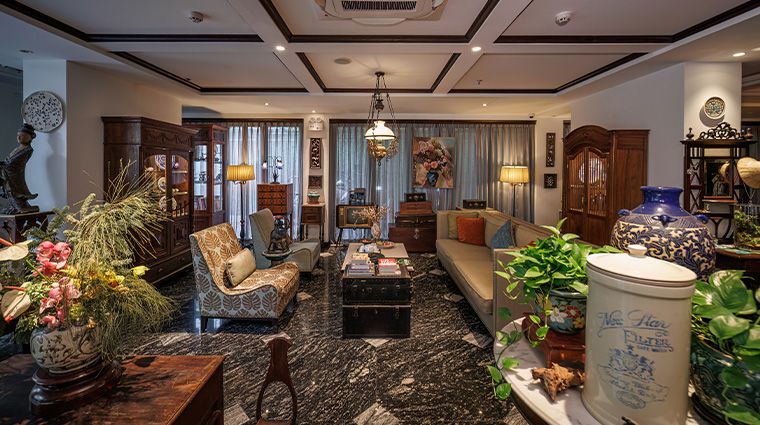 Façade graphique noir et blanc dans le quartier branché de Thao Dien : cet établissement de 29 chambres expose céramiques de Bien Hoa et sculptures sur bois dans des couloirs-galeries. La piscine à débordement sur le toit domine la skyline de Saigon, tandis que le NUC Concept Kitchen revisite la cuisine vietnamienne. L'atelier KULA invite à la création artistique, et le centre bien-être associe massages traditionnels aux technologies ultrason et infrarouge.