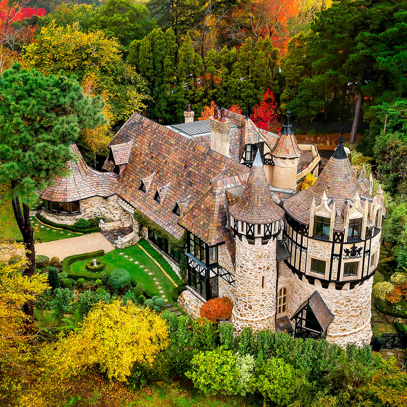 Tourelles et murs de pierre brute surgissent des Adelaide Hills telle une vision fantasmée de château européen — pourtant Thorngrove Manor fonctionne en retraite contemporaine de cinq suites seulement. Les intérieurs baroques regorgent de tapisseries, plafonds sculptés et lits à baldaquin anciens ; ici un piano allemand d'époque, là un bain thermal privé. Les repas se prennent en suite ou aux chandelles, garantissant une intimité absolue à vingt minutes d'Adélaïde.