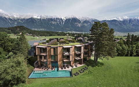 Sur le plateau ensoleillé de Mieminger, aux portes d'Innsbruck, ce resort alpin de 124 chambres habillées de bois clair conjugue architecture durable et confort montagnard. Neuf bassins intérieurs et extérieurs, un village de saunas et des salons chauffés au feu de bois composent un spa généreux pour randonneurs et skieurs. Trois restaurants proposent une cuisine autrichienne contemporaine, dont l'un domine le parcours de golf de 27 trous.