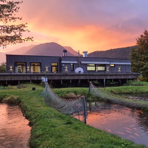 Cube contemporain posé au bord de l'étang monastique de Stams, Schwarzfischer élève ses propres poissons à quelques mètres des fourneaux. L'omble chevalier et la truite passent directement de la pisciculture à la braise vive, sous les yeux des convives attablés en terrasse face aux montagnes. Tartare d'omble, filet laqué teriyaki, glace onctueuse au lait tyrolien : une table de caractère pour cyclistes exigeants longeant l'Inn.