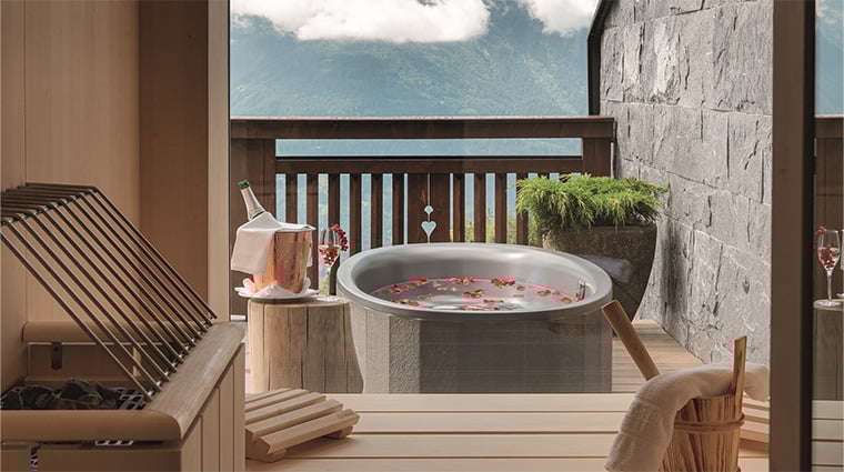 À 1 300 mètres d'altitude dans les Alpes tyroliennes, ce complexe thermal de 5 400 m² s'articule autour d'un village de saunas traditionnel comptant onze espaces de chaleur distincts : saunas finlandais, bio sauna en pin cembro, hammams et grotte d'eau salée. Les rituels d'Aufgüsse, deux fois par jour, diffusent des effluves de rose, menthe ou chocolat. La piscine panoramique intérieure-extérieure, traitée selon la méthode Grander, offre une vue alpine saisissante.