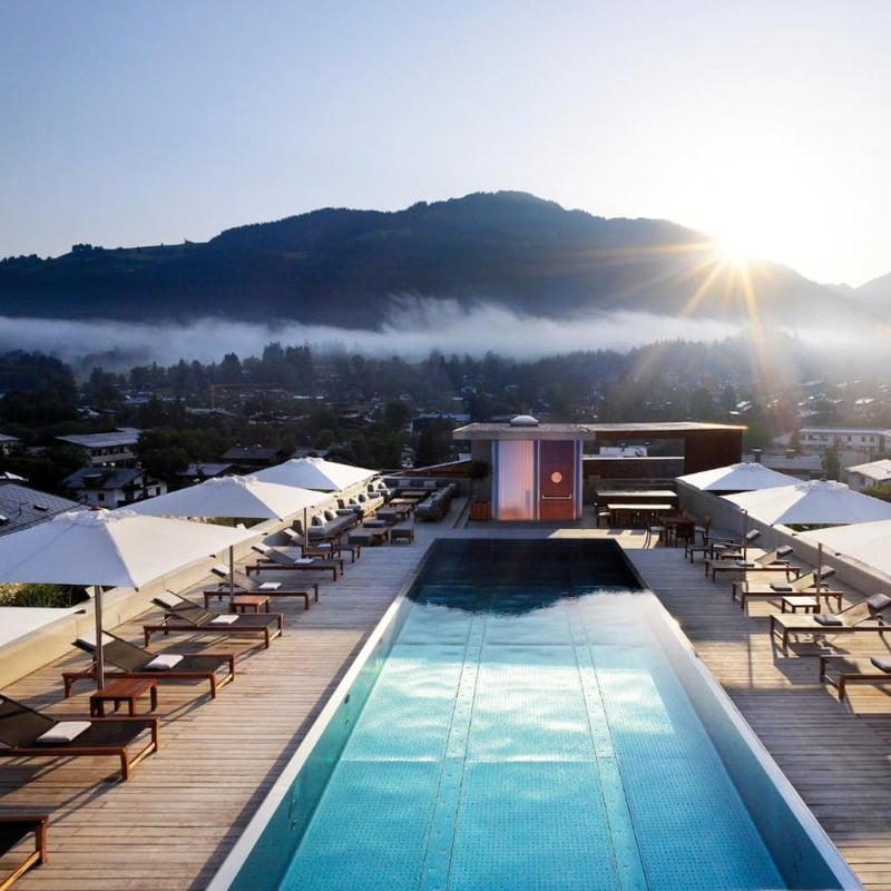 Rupture assumée avec l'architecture tyrolienne traditionnelle, cet établissement de 26 chambres cultive une esthétique résolument contemporaine aux lignes épurées. Le chef-propriétaire Simon Taxacher orchestre une table gastronomique d'inspiration méditerranéenne française, reconnue par les Grandes Tables du Monde, ainsi qu'un bistrot alpin raffiné. L'espace bien-être déploie piscine intérieure de quinze mètres et soins Comfort Zone, tandis que Kitzbühel se découvre à un quart d'heure de route.