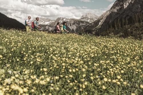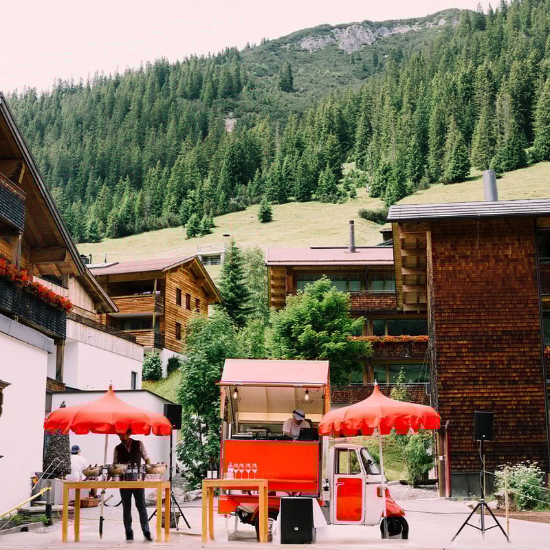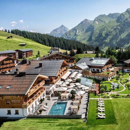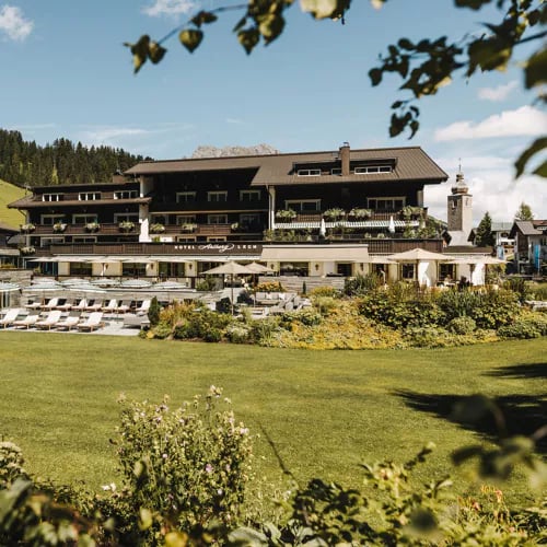 Posé à même la Schlegelkopfpiste, cet établissement de dix-huit chambres offre un accès skis aux pieds devenu rare, même à Lech. Son vaste espace bien-être — piscine intérieure, saunas multiples, hammam, bassin froid, jacuzzi — récompense les efforts de la journée. La table Aurelio's réinterprète le terroir autrichien avec inventivité, tandis que l'été dévoile ces mêmes sommets métamorphosés en prairies fleuries, propices à la randonnée.