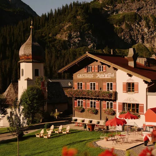 Derrière sa façade d'auberge alpine séculaire se dévoile une métamorphose contemporaine saisissante : chambres minimalistes en érable blanc autrichien baignées de lumière. Le spa de 1 500 mètres carrés réunit sauna finlandais en extérieur, grotte de vapeur et piscine intérieure-extérieure chauffée pour la nage hivernale. Le restaurant saisonnier propose une cuisine autrichienne moderne, tandis que Lech offre l'accès aux plus beaux domaines skiables d'Europe.