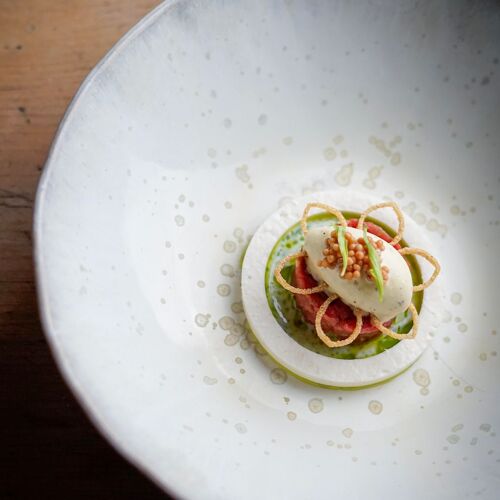 Peter Fankhauser cultive un potager en permaculture de mille mètres carrés dont il tire légumes et fruits pour ses menus végétariens—neuf services en semaine, treize le week-end. Couronné d'une étoile Michelin et d'une Étoile Verte, le chef compose des assiettes d'une complexité aromatique saisissante. Le repas débute à heure fixe pour l'ensemble des convives, chaque plat accompagné d'un exposé sur cette philosophie durable.