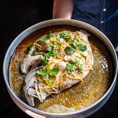 Aux portes de Bruges, dans une maison à pignon revisitée par une extension contemporaine, Filip Claeys déploie une gastronomie engagée couronnée de deux étoiles. Petit-fils de pêcheur et fondateur du collectif NorthSeaChefs, il réhabilite les espèces délaissées en traçant chaque poisson jusqu'au bateau d'origine. Son crabe de la mer du Nord, escorté d'un trio de sauces—corail, noix, algues—révèle des facettes insoupçonnées du crustacé. Le service orchestré par Sandra Meirlevede conjugue élégance et chaleur familiale.