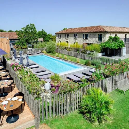 Ancien monastère jouxtant les Thermes de Barbotan, cet établissement de 25 chambres puise aux sources thermales du village pour alimenter son spa, agrémenté d'un hammam et d'un jacuzzi. La cuisine porte l'empreinte du chef Michel Guérard, dont la famille détient les lieux : classiques français rythmés par les saisons. Jardins, piscine estivale et décor traditionnel composent une halte gasconne dédiée au ressourcement.