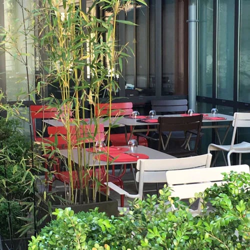 Des troncs de bouleaux encadrent l'entrée de cette salle contemporaine aux murs anthracite et banquettes carmin. La cuisine brasserie, précise et généreuse, décline crevettes sautées au risotto de piquillo et chorizo, velouté Dubarry relevé d'huile de cacahuète au piment d'Espelette. La terrasse surplombe la place principale, et le moelleux au chocolat, cœur coulant et crème à l'Armagnac, achève le repas avec justesse.