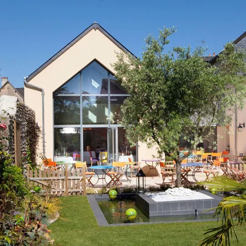 Aux portes de la Beauce, cette table Bib Gourmand déploie une cuisine bistronomique généreuse et maîtrisée. Tête de veau façon gribiche, bœuf poêlé aux abats émiettés, petit pot de crème accompagné d'une madeleine : le répertoire affirme un savoir-faire classique sans solennité. La salle contemporaine, baignée de lumière grâce à sa large façade vitrée, se prolonge en terrasse sur un jardin verdoyant. Des chambres colorées prolongent l'escapade gourmande.